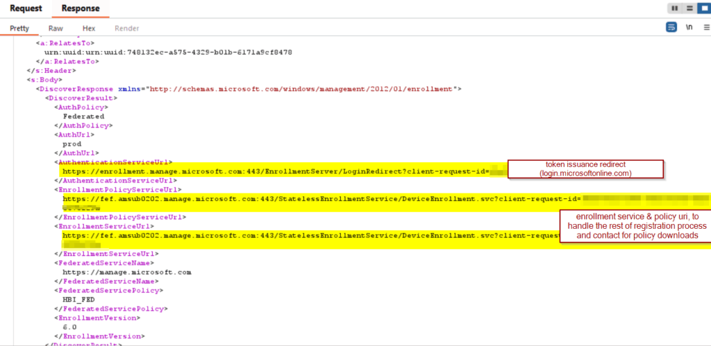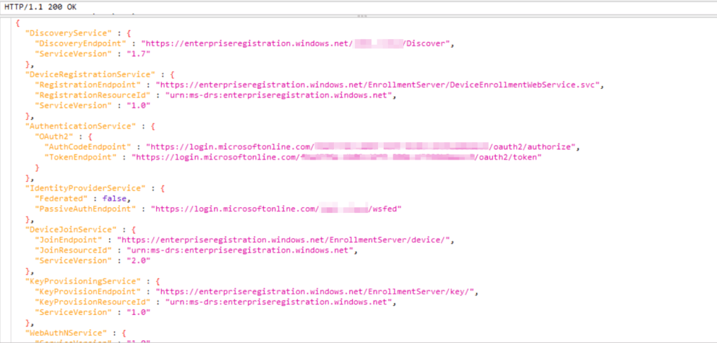 Device registration service sends back the related endpoints for my tenant based on the previous request.