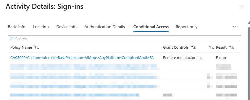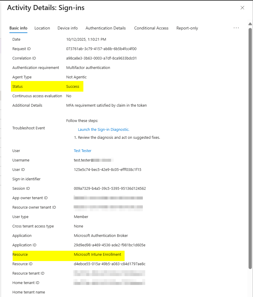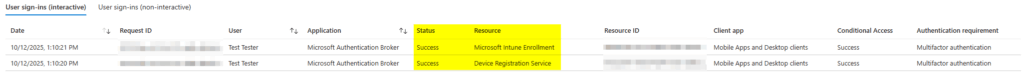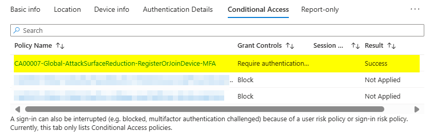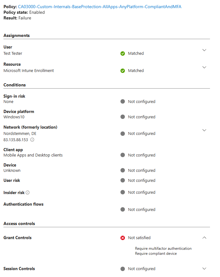 But this failure report is unimportant for the initial enrollment process. The Microsoft intune enrollment process was completed successfully meanwhile a conditional access policy with scoped to all resources (without exclusions) for MFA and required devices marked to be compliant was enabled.