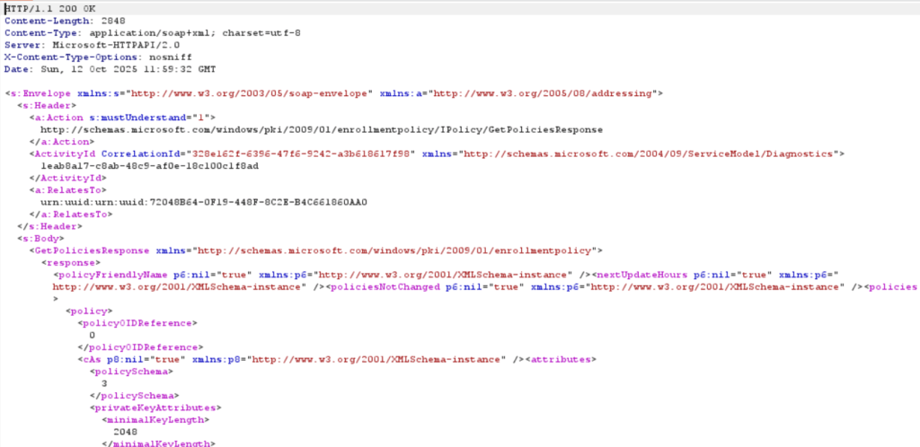 After the relevant endpoints are discovered, mdm enrollment client starts the enrollment process. At this point, intune mdm enrollment client must perform an authentication to get the needed information. And do you remember, we have previously defined a conditional access policy which enforces devices to be marked as compliant for authenticate successfully? Chaka – instead of the referred policy, intune starts the enrollment process although the device isn’t comply with the compliance policy at this point.