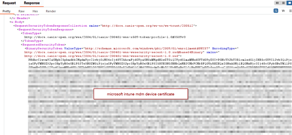 In one of the following responses, the mdm enrollment client receives the microsoft intune mdm device certificate.