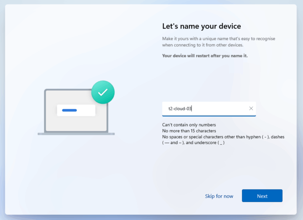 Now that everything is ready, we can start with the installation. For this test, the chosen device name is t2-cloud-03 :