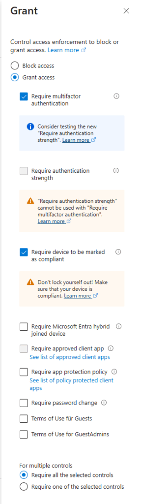 Hello everyone, in this post, we will discuss a conditional access configuration I have seen in many Entra Tenants. Most of them use conditional access policies to control and allow access to resources only from compliant devices. These device compliance policies are managed through Intune. Nearly all of these compliance conditional access policies looks like this one: